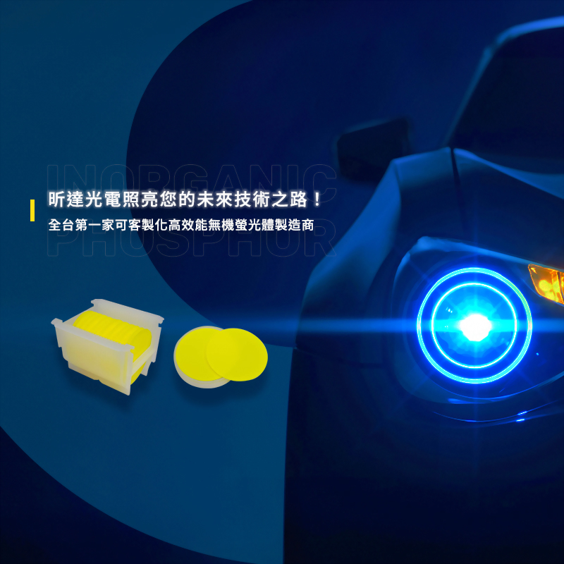 公司簡介 昕達光電致力於玻璃及陶瓷發光材料之研發與製造,為國內第一家可客製化高效能無機螢光體之製造商,專注於提升無機螢光材料可靠度及發光效率,開發耐高溫陶瓷螢光材料取代現有矽膠材料,使用於高功率照明(車燈、投影機、投射燈等)。對於未來自動駕駛與新能源汽車時代到來,商品具備產業升級與高市場發產潛力。本...